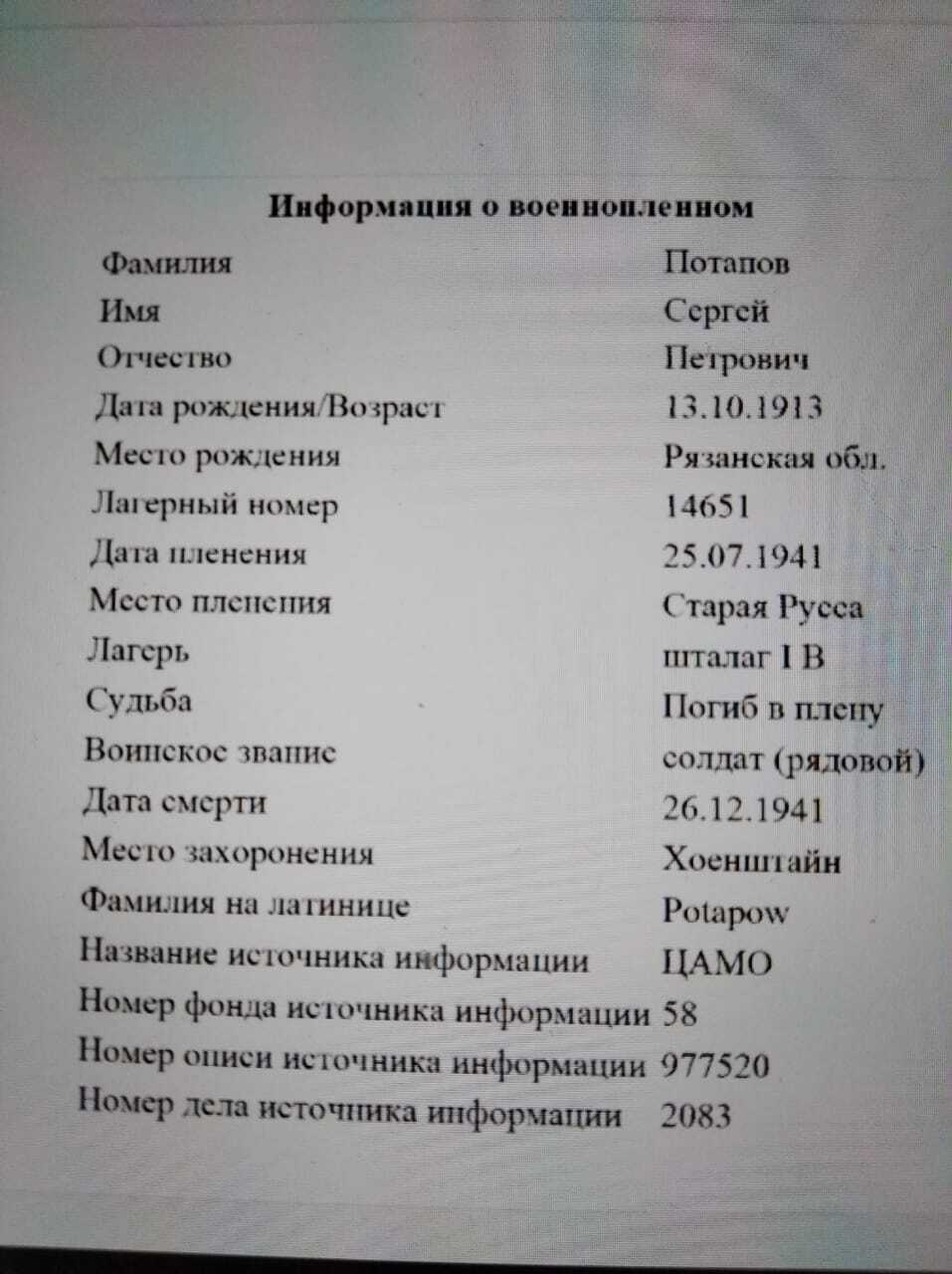 Только что видел в заставке на России 24 фамилию и инициалы своего деда, а возможно и не его, т.к. дед был сержант, а публикуются сегодня списки красноармейцев без указания звания.