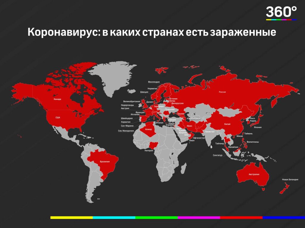 В пятницу в список «коронавирусных» стран добавились Белоруссия, Нидерланды, Литва, Новая Зеландия, Сан-Марино, Нигерия и Азербайджан. Заболевание стремительно распространяется по всей планете. «360» составил карту всех государств, где зафиксировали коронавирус.