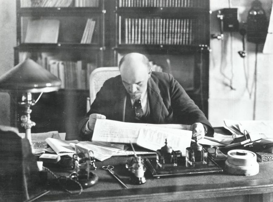 Владимир Ленин за рабочим столом в своем кабинете в Кремле. Москва, октябрь 1918 г.