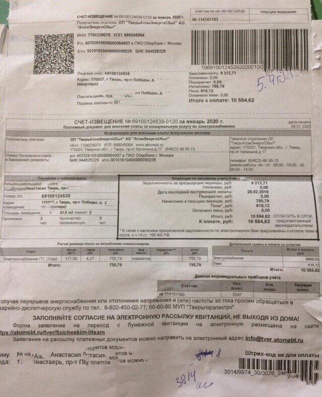 Итак, ТверьАтомЭлектроСбыт. Что пришлось заплатить Анастасии: