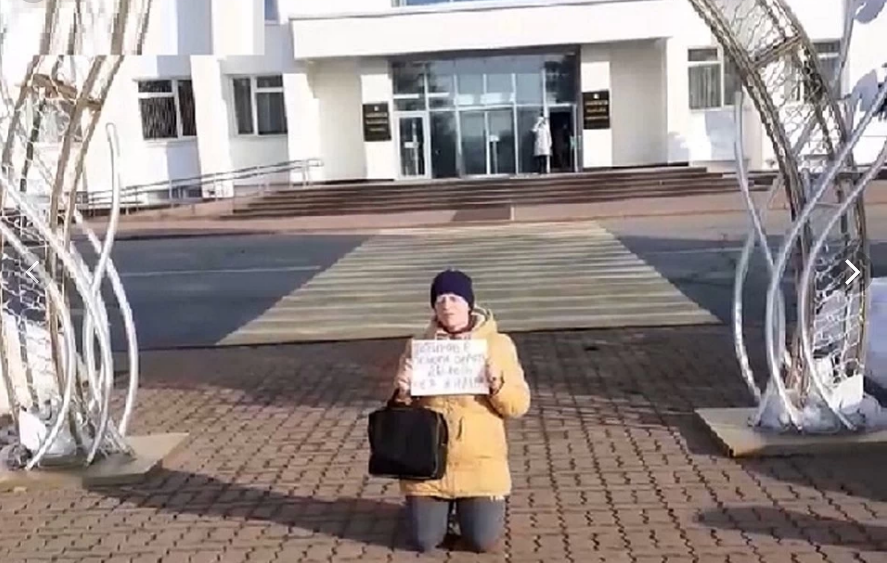 К приемной главы республики женщина пришла, так как Хабиров заблокировал ее в соцсетях. В ходе своего одиночного пикета она встала на колени и попросила главу региона посодействовать ей в получении жилья, исполнив, таким образом, решение Верховного суда.