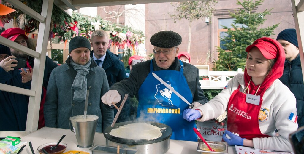 Случайно на просторах Инета наткнулась на видео, где лидер ЛДПР Владимир Вольфович Жириновский в Масленицу-2020 раздавал москвичам бесплатные блины с начинкой. Начинка была в виде: