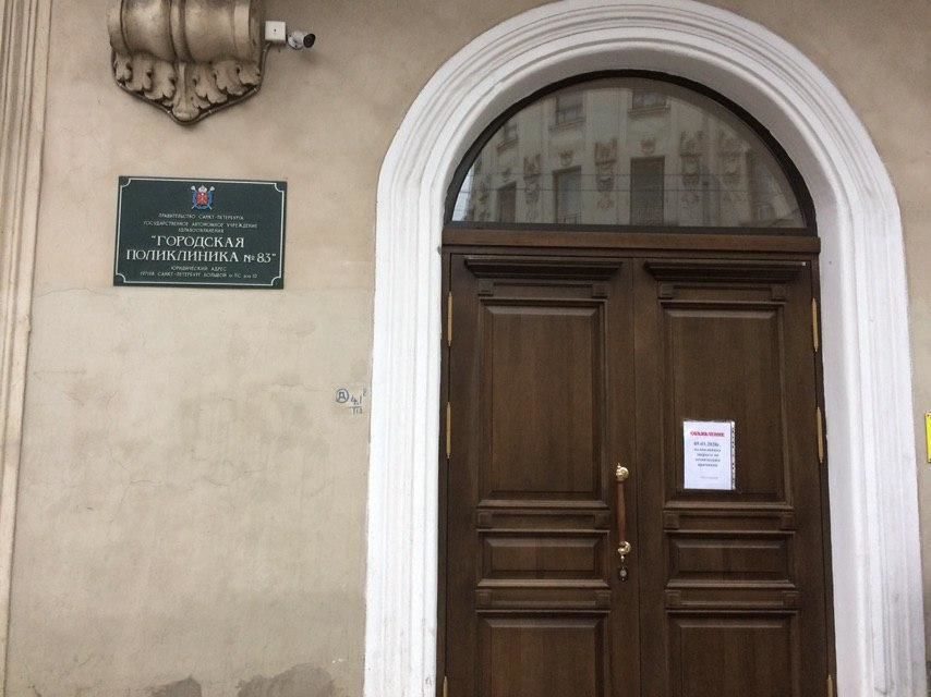 Несмотря на то, что в Комитете по здравоохранению заявили, что поликлиника №83 на Большом проспекте Петроградской стороны, 10, откроется через 3 часа, на ее дверях красуется табличка о том, что медучреждение на сегодня закрыто.