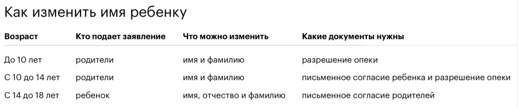 Если ребенку не нравится его имя, он может поменять его с согласия родителей, однако до 14-летия обязательно потребуется разрешение органа опеки, которое должны получить родители ребенка. Если мать хочет изменить ребенку имя, а отец против этого, то орган опеки не даст такого разрешения. Но есть случаи, когда мнение второго родителя можно не учитывать: