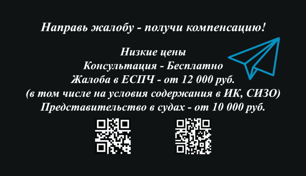 От 12 000 руб. за жалобу в ЕСПЧ. Подробнее на моем сайте https://echr32.ru/uslugi-i-ceny/