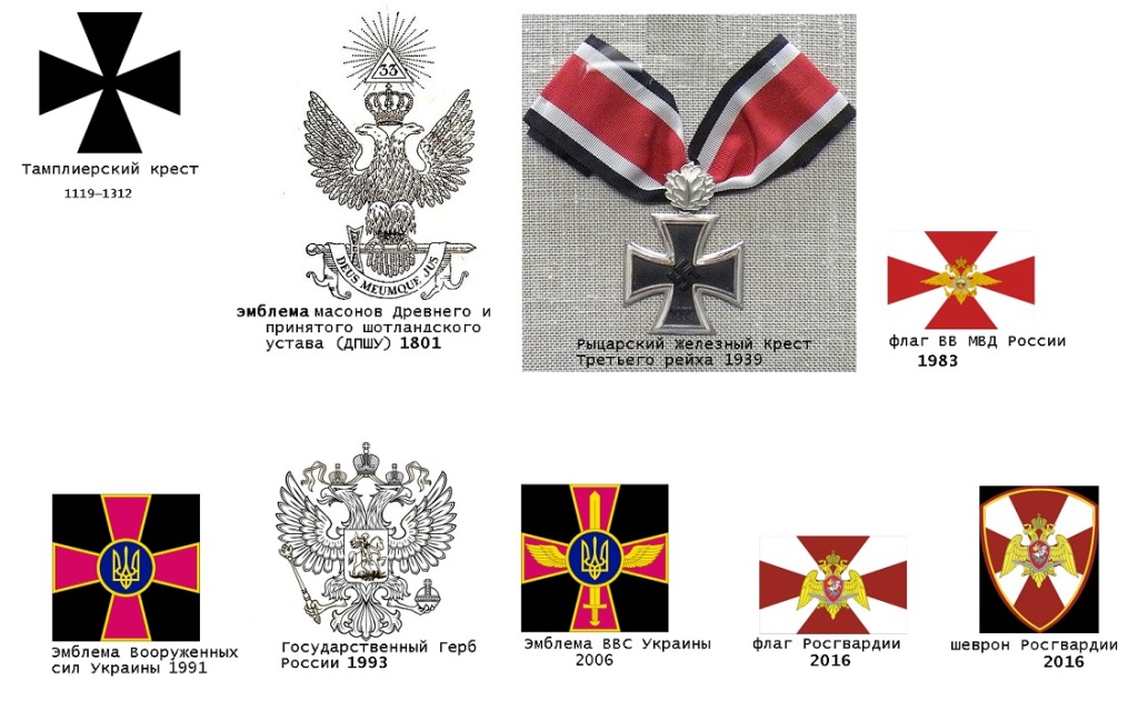 А другие европейские страны не имеют этой "скопированной" геральдической символики? Впрочем. Она была скопирована и теми же тамплиерами с ещё более ранней, римской.