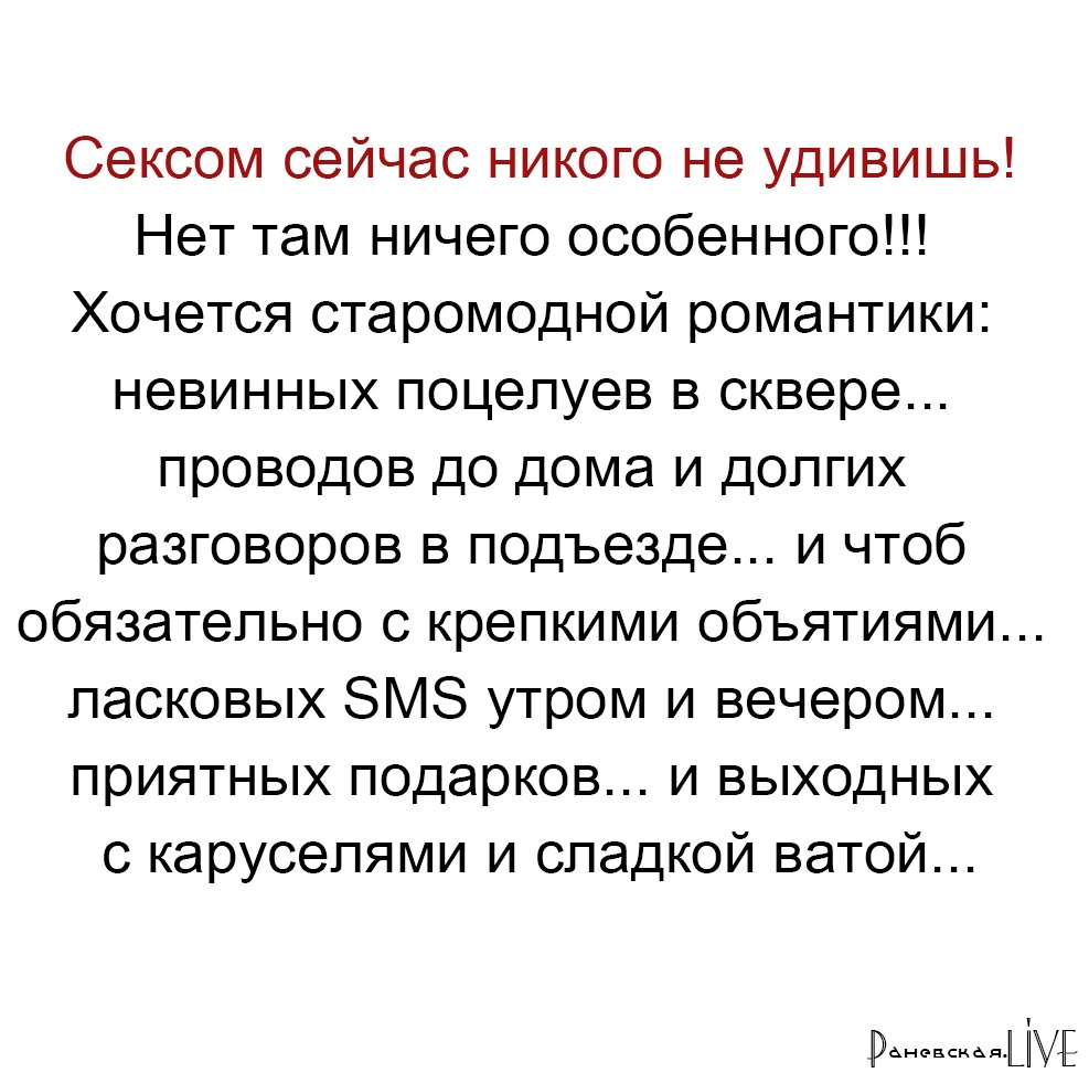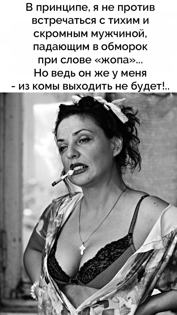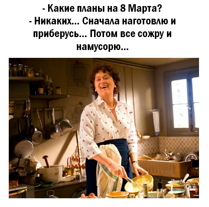 "Я не знаю, кто такая Роза Люксембург, я не знаю, кто такая Клара Цеткин, но праздник они придумали хороший и это прекрасный день в году, когда мужчины склоняются к нашим ногам с букетами цветов и исполняют наши желания.