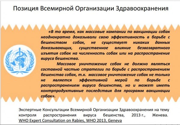 ВОЗ уже давным-давно опубликовала результаты научных исследований, которые доказывают что истребление бродячих собак приводит лишь к всплеску роста их численности. И рекомендовало применять ОСВВ!