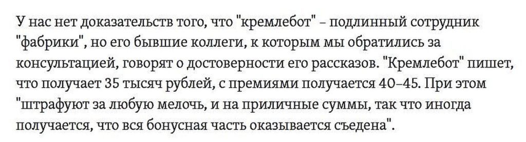Хочется отметить, что кремлеботы получают за своё "творчество" деньги и как и у любого трудоустроенного человека, у кремлебота есть своя должностная инструкция, примерно такая: