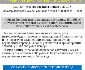 Недавно, один из пользователей моего форума, выложил любопытный пост Подробнее ➤. Вот его содержание:"Согласно внесенным поправкам в действующее законодательство, каждый гражданин имеет право получить денежную компенсацию за период с 2000 по 2019 год. Вы можете самостоятельно проверить предусмотрена ли для Вас денежная компенсация и получить выплату на банковскую карту или рублевый интернет кошелек".