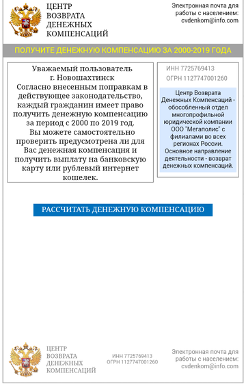 Центр возврата денежных компенсаций. Очередной вид мошенничества!