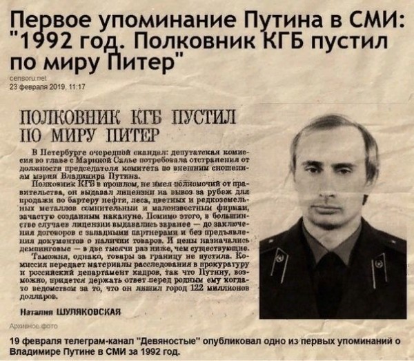 То есть, полковником КГБ господин Путин не был, но в 1992 году он, действительно, возглавлял Комитет по внешним связям.
