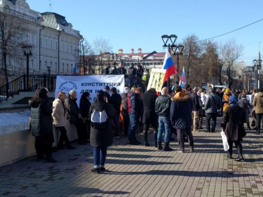 Около 400 человек пришли на митинг против поправок в Конституцию, который состоялся 14 марта на площади Труда у здания иркутского цирка.