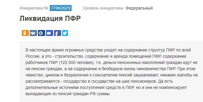 На сайте РОИ (Российская общественная инициатива) появилось предложение об упразднении монстра ПФ РФ в том виде, в каком он сейчас.
