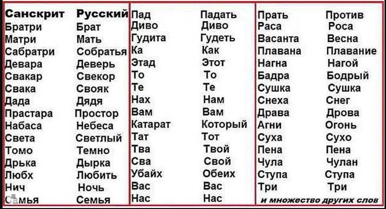 Оказалось, что огромное количество корней, почти без изменения, перешло из матери нашей - Индии через Русь Святую во все современные европейские языки.