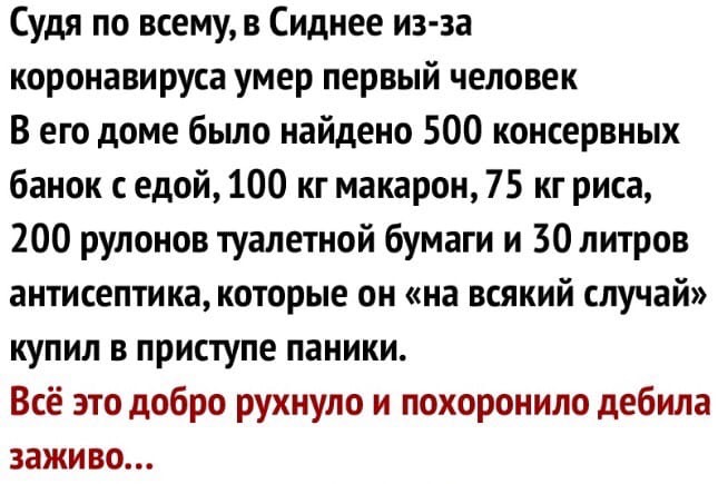Товарищи, коллеги, сегодня по ряду СМИ во многих городах прошли указы об ограничениях в связи с распространением коронавируса. В частности, школы, лицеи, институты переводятся на дистанционное обучение. Многие сотрудники переведены на удаленную работу. Стали появляться сообщения об опустевших полках в магазинах.