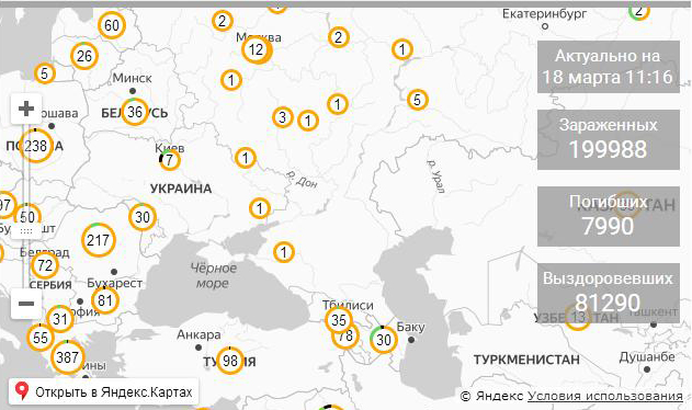 Коронавирус. Онлайн карта распространения коронавируса. Коронавирус в России и мире.