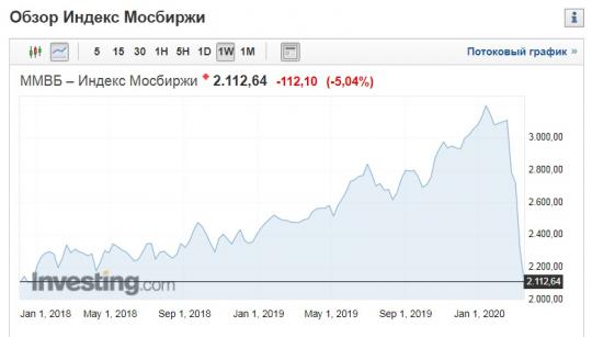-Индекс Московской биржи: 2 100 пунктов (-400 пунктов).