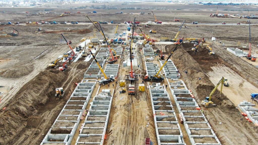 Многие из 3200 строителей, которые работают днем и ночью, живут на стройплощадке в быстровозводимых зданиях и специально построенном палаточном городке.