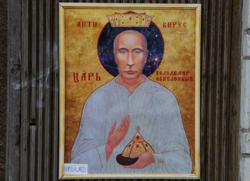 Воскресное, ничем ни примечательное утро 22 марта 2020 года, многим жителям города Кирова, вышедшим на воскресный променад в районе Кировского областного суда, находящегося по адресу: улица Спасская д.61, запомнится надолго, так как их непринужденную прогулку сопровождал строгий взгляд, взирающий с художественной композиции, расположенной на доске, предназначенной для объявлений и рекламы, и стилизованной под икону, взгляд "государя - Володимира Обнуленного" .