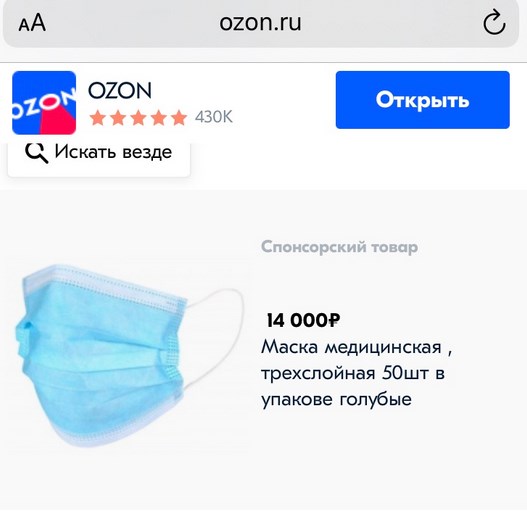 Зато быстренько под суетились интернет-магазины и видимо решили нажиться на временном дефиците масок. Когда я увидела цену масок на популярном интернет-сайте, у меня не было слов... Единственные маски из трёхслойных, которые можно купить на сайте.