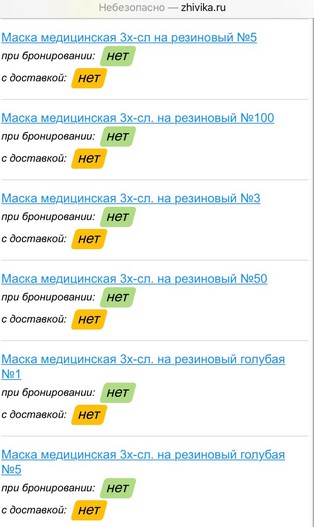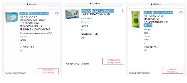 Приведу скрин с 3 ех популярный сайтов интернет-аптек о наличии медицинских масок.