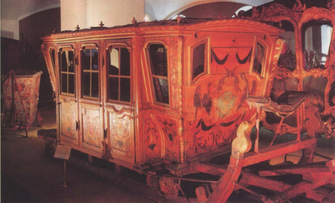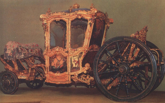 Карета (от лат. carrus - повозка) - закрытая пассажирская повозка с рессорами. Первоначально кузов подвешивался на ремнях, потом для подрессоривания стали использовать пружины (с начала XVIII века), а с начала XIX века стали использовать рессоры.