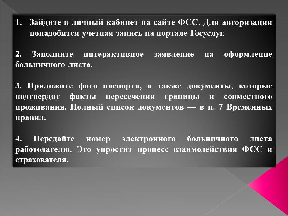 Для тех граждан, которые обязаны соблюдать режим изоляции, предусмотрели подачу заявления на получение больничного через интернет. Это можно сделать на сайте ФСС (Фонд социального страхования).