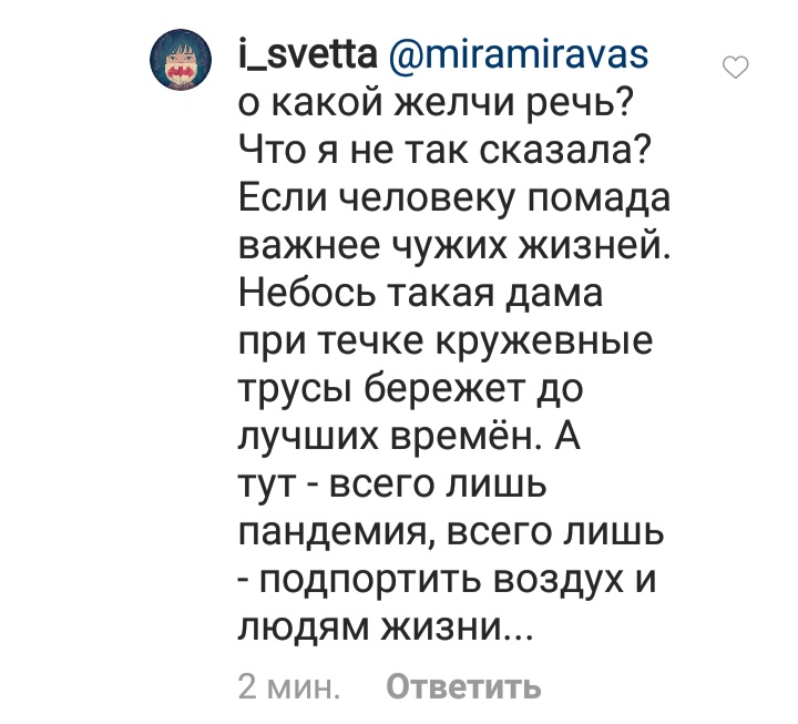 Вы не поверите. Показываю, что пишет под постом о чихании одна дама в Инстаграмм (это всё в открытом доступе).