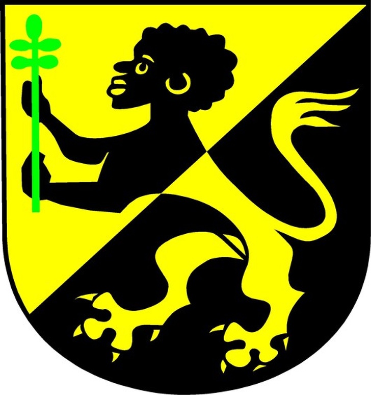 На гербе этой австрийской коммуны изображен лев, скрещенный с человеком. Сюжет для герба в целом обычный, сложно только объяснить, почему фигура человека черного цвета. По одной версии, на гербе изображен святой Маврикий, покровитель Римской империи. Он жил в столице Древнего Египта, поэтому на многих картинах художники изображали его кожу темной.