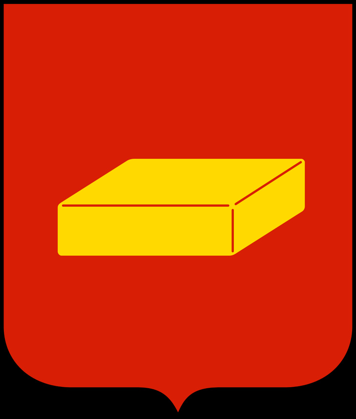 Это, пожалуй, один из самых минималистичных гербов в мире. Но здесь изображен вовсе не кирпич, как может показаться, а брусок мыла. Уже в XVII веке в Шуе появились первые мыловаренные производства, а спустя почти 100 лет мыло появилось на официальном гербе города.