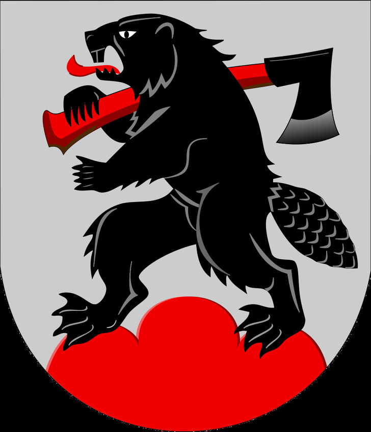 Фигура сурового бобра-лесоруба вобрала в себя практически все важные данные об этом маленьком финском городе. Во-первых, он находится в местности, богатой реками и озерами. И, видимо, бобрами, которые селятся у водоемов. А топор на плече грызуна говорит о роде деятельности местных жителей: с давних времен река, на берегу которой стоит Эно, использовалась для сплава леса. Зверей-рабочих нередко изображают на гербах городов, связанных с промышленностью.