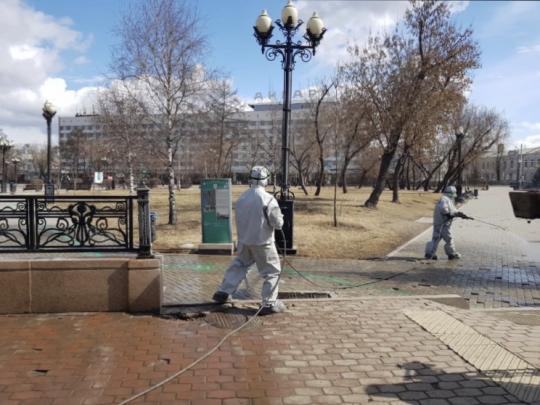 В мэрии Иркутска сообщили, что сотрудники муниципальных предприятий начали дезинфицировать парки, скверы, остановки и детские площадки из-за угрозы распространения коронавируса.