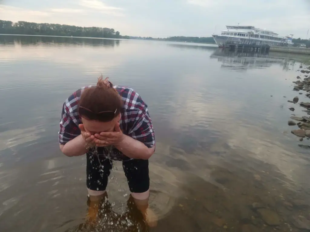 Умываюсь в Волге (Углич). Только приехали, Раннее утро