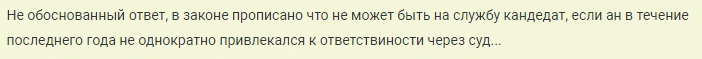 Возникает закономерный вопрос: правомерно ли ему отказали в трудоустройстве? Или я придираюсь к добропорядочному гражданину, вставшему на путь исправления, решившему верой и правдой служить народу и охранять правопорядок? Не стесняемся, голосуем и оставляем комментарии.