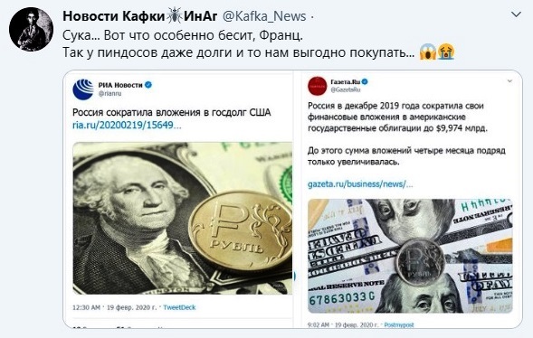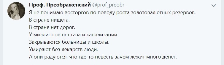 А ДЕНЬГИ в ценных бумагах США и Гейропы по мизерные проценты или вообще В МИНУС разве не власть держит - вместо вложения в экономику страны! Поддерживаем ЭКОНОМИКУ ЗАКЛЯТОГО ВРАГА! Разве не так?