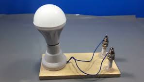 Для поделки понадобятся всего лишь две неработающих автомобильных свечи, патрон для лампочки, кусок доски или фанеры размерами примерно 10 см х 15 см, кусочек провода и круглый магнит диаметром 3 см (от ненужного динамика или колонки). Процесс изготовления агрегата я предлагаю посмотреть в интернете путём несложного поиска.