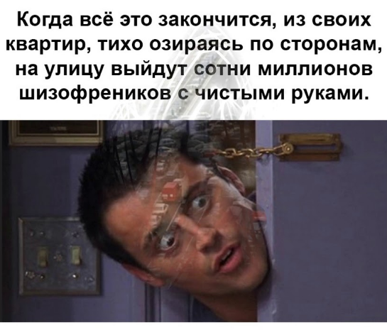 В изоляции и без юмора, после просмотра Тв,можно и в Кащенко загреметь.. Следующий раз, если захотят измерить температуру в лоб - буду давать в глаз