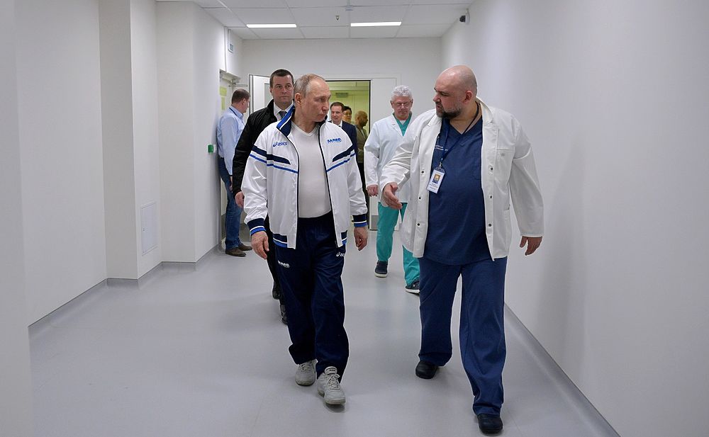 На прошлой неделе во вторник, президент РФ В.Путин посетил больницу для зараженных коронавирусом COVID-19 в подмосковной Коммунарке. Он общался с главным врачом Денисом Проценко и поблагодарил его за работу. Глава государства отметил профессионализм врачей и высокое качество ухода за пациентами. При визите президента РФ все телеканалы показали, как Проценко и Путин пожали друг другу руки.