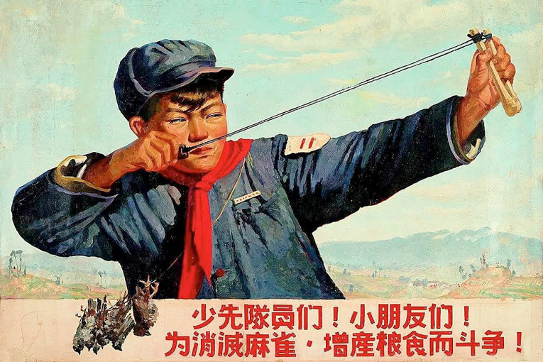 Первым пунктом в "поднятии" пищевой промышленности стала борьба с вредителями. Власти Китая выделили четыре типа животных и насекомых, которые мешают здоровью нации и выращиванию продовольствия. Ими были мухи, комары, крысы и воробьи. Именно воробьев предложил истреблять Мао Цзедун, который в детстве видел, как птицы съедают зерно с полей.
