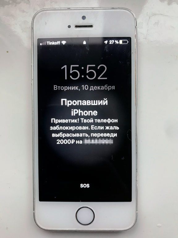 На экране Айфона появляется сообщение: «Ваше устройство заблокировано. Вот номер кошелька, пришлите денег».