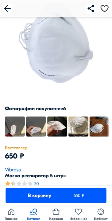 А в другом точно такие же маски тоже в количестве пяти штук стоят уже 650 рублей.