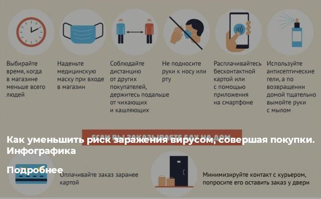 Оказавшись в магазине, необходимо протереть ручку торговой тележки или корзинки влажной салфеткой. Также можно использовать перчатки, чтобы избежать прямого контакта с поверхностями, которые могут быть потенциально зараженными.