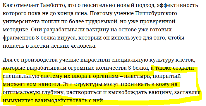 Вот именно это (выделенное желтым) и наводит на определённые мысли о грядущей чипизации. Поскольку большинство вакцин применяются внутримышечно, подкожно или орально.