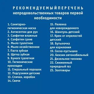 В рекомендуемом Перечне непродовольственных товаров первой необходимости на апрель 2020 года 23 позиции. Они перечислены далее.