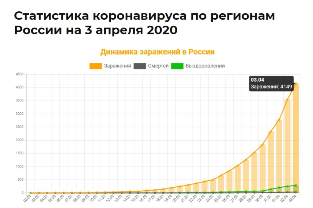 Коронавирус в России – статистика онлайн и последние новости на сегодня 3 апреля 2020 года Источник: