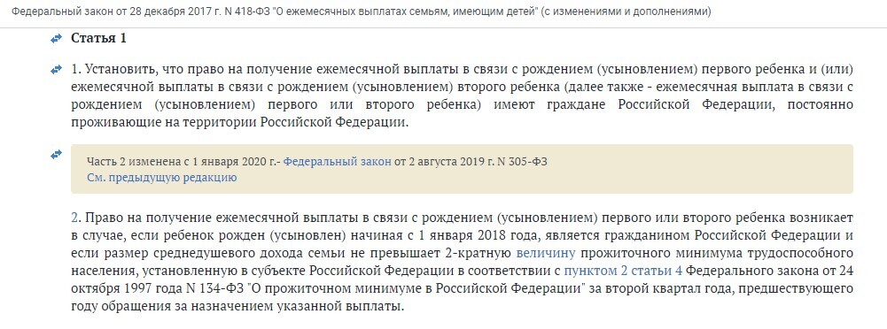 Федеральный закон от 28 декабря 2017 г. № 418-ФЗ «О ежемесячных выплатах семьям, имеющим детей»: Подробнее ➤.