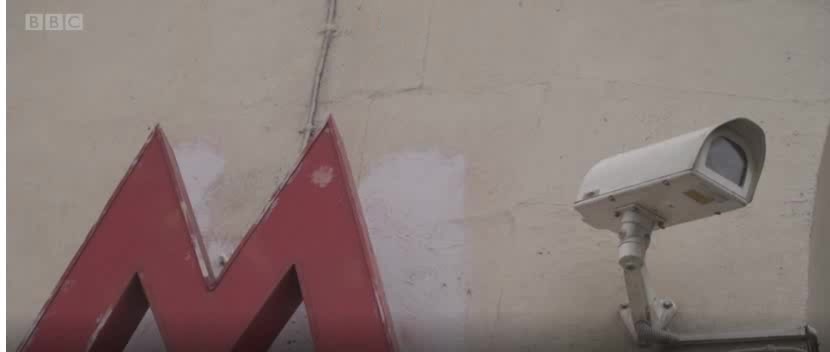 Сара показывает дорогу, по которой она ходит каждый день на работу и говорит, что никогда раньше не замечала, что на улицах установлено такое огромное число видеокамер.