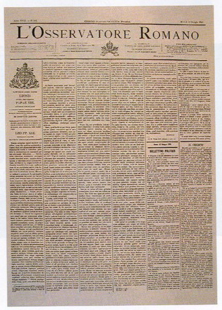 «Святая церковь в течение века является жертвой великих, ужасных преследований, порождая в большом количестве героев, своей кровью закреплявших христианскую веру (о том, что инквизиция с остервенением преследовала инакомыслящих и казнила сотни тысяч человек, кардинал Мэри дель Валь считает излишним упоминать), теперь же ад ведёт против церкви ещё более ужасную борьбу, более коварную и тонкую, и делает он это через крамольную печать. Ни одна из опасностей не представляет из себя столь великой угрозы для веры и обычаев, как эта, поэтому святая церковь неустанно предупреждает христиан остерегаться её».