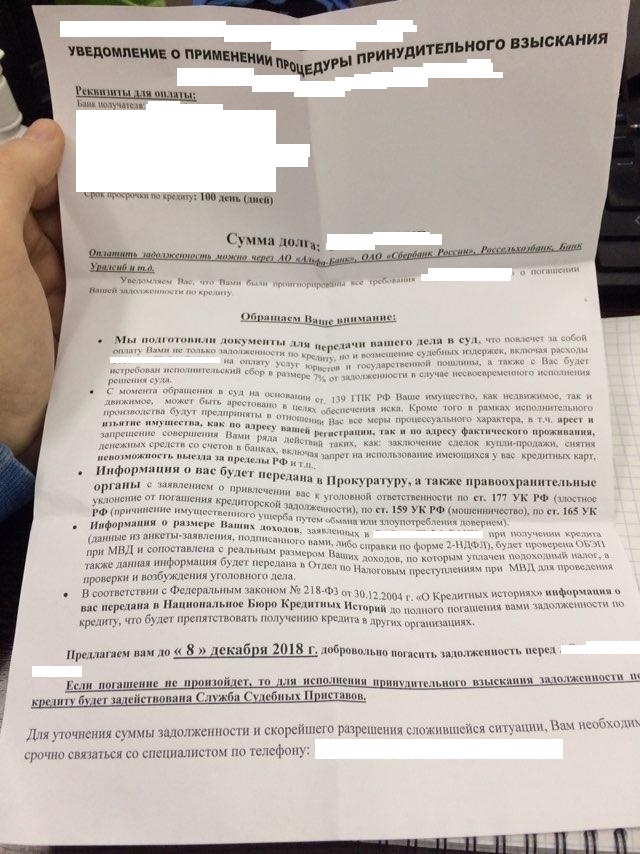 Вот такие занятные бумажки присылает один известный российский банк своим клиентам, которые имеют просрочку по платежам.